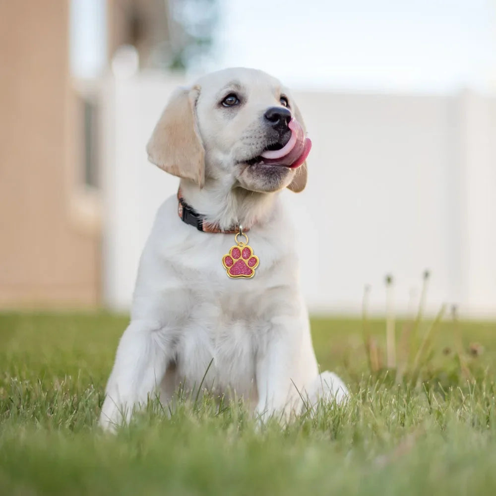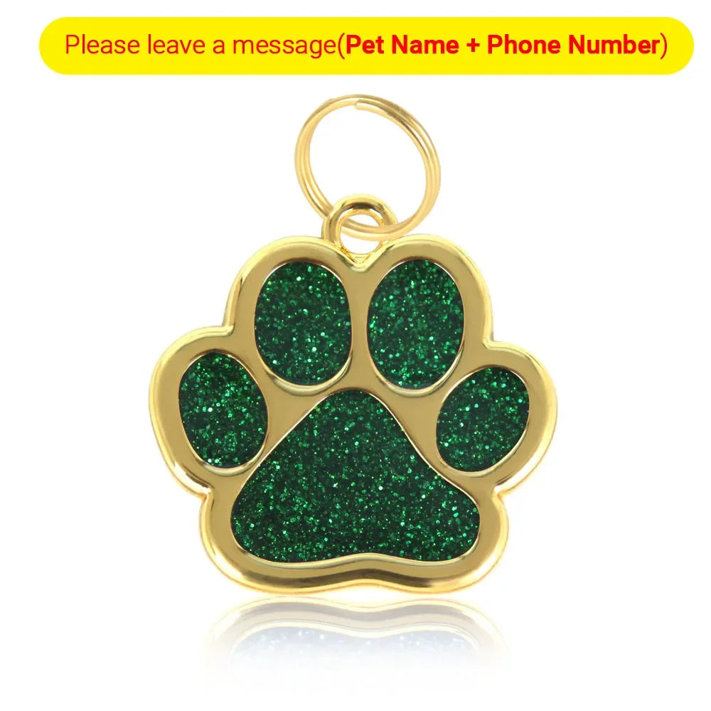 Personalized Glitter Paw Custom Engraved Pet Tag